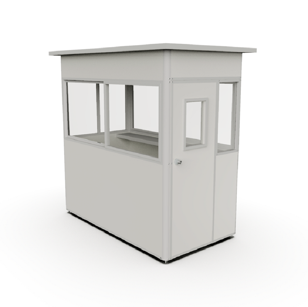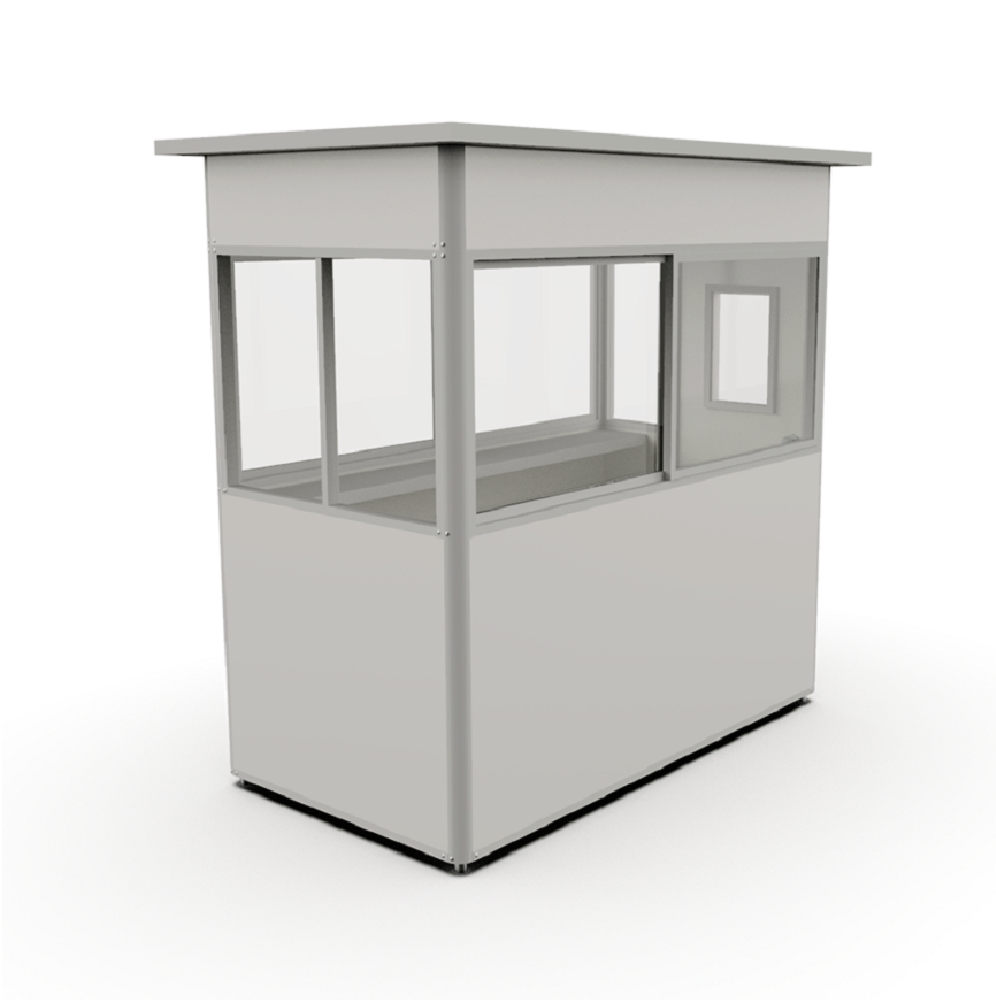 Al igual que todas nuestras casetas de vigilancia viene equipada con ventanas en todas sus caras brindando una vista panorámica de 360° para una eficaz tarea dee vigilancia y seguridad. Esta caseta para guardia es muy fácil de instalar y transportar e incluye un mesón de atención para brindar la máxima comodidad y prestaciones operativas al personal de seguridad.