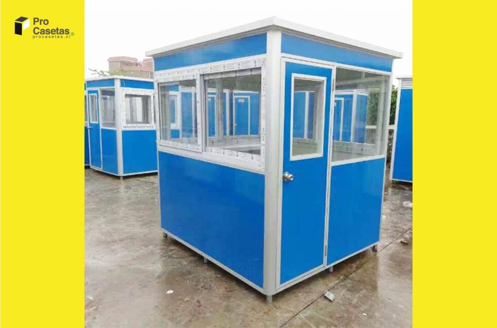 • Caseta para guardia y vigilancia con capacidad para 2-3 personas. Dimensiones 220x120, visión 360 ventanas de aluminio. Azul